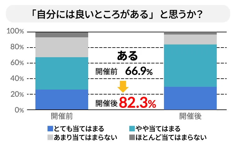 現在の日本の10代は自己肯定感が低いと言われています。和歌山でも同様の調査結果が出ています。その低さから、自信がなく、意欲を持てなかったり、就職後3年以内の離職率や社会的自立ができない引きこもり率が高いといった社会的課題があります。