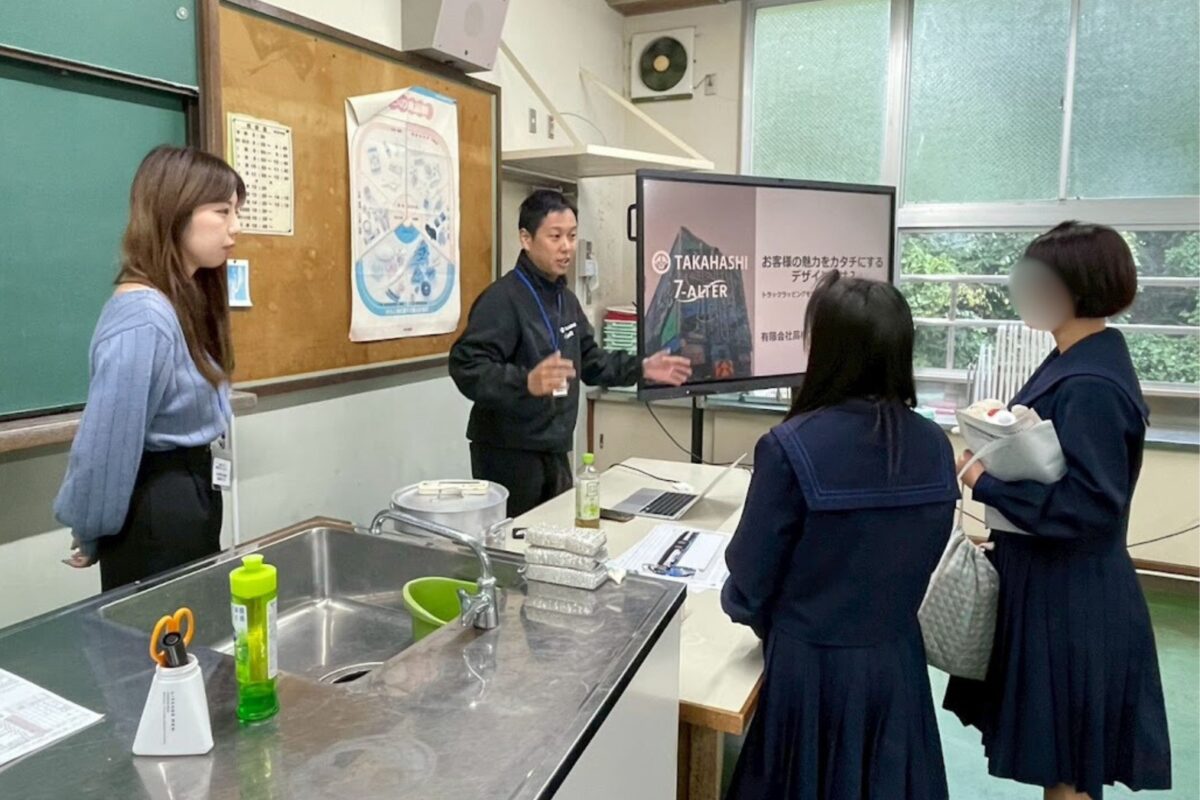 今回、この特別な授業を担当してくださったのは、地域で実際に働く12名の職業先生たちです。生徒たちにとって、地域で働く大人から直接話を聞くのは初めての経験。 教室では、職業先生の話に真剣に耳を傾け、一生懸命メモを取る姿が印象的でした。 終わりのチャイムが鳴ったあとも教室に残り、職業先生と話し続ける生徒も多く、 その姿から「もっと知りたい」「話したい」という気持ちがあふれていました。