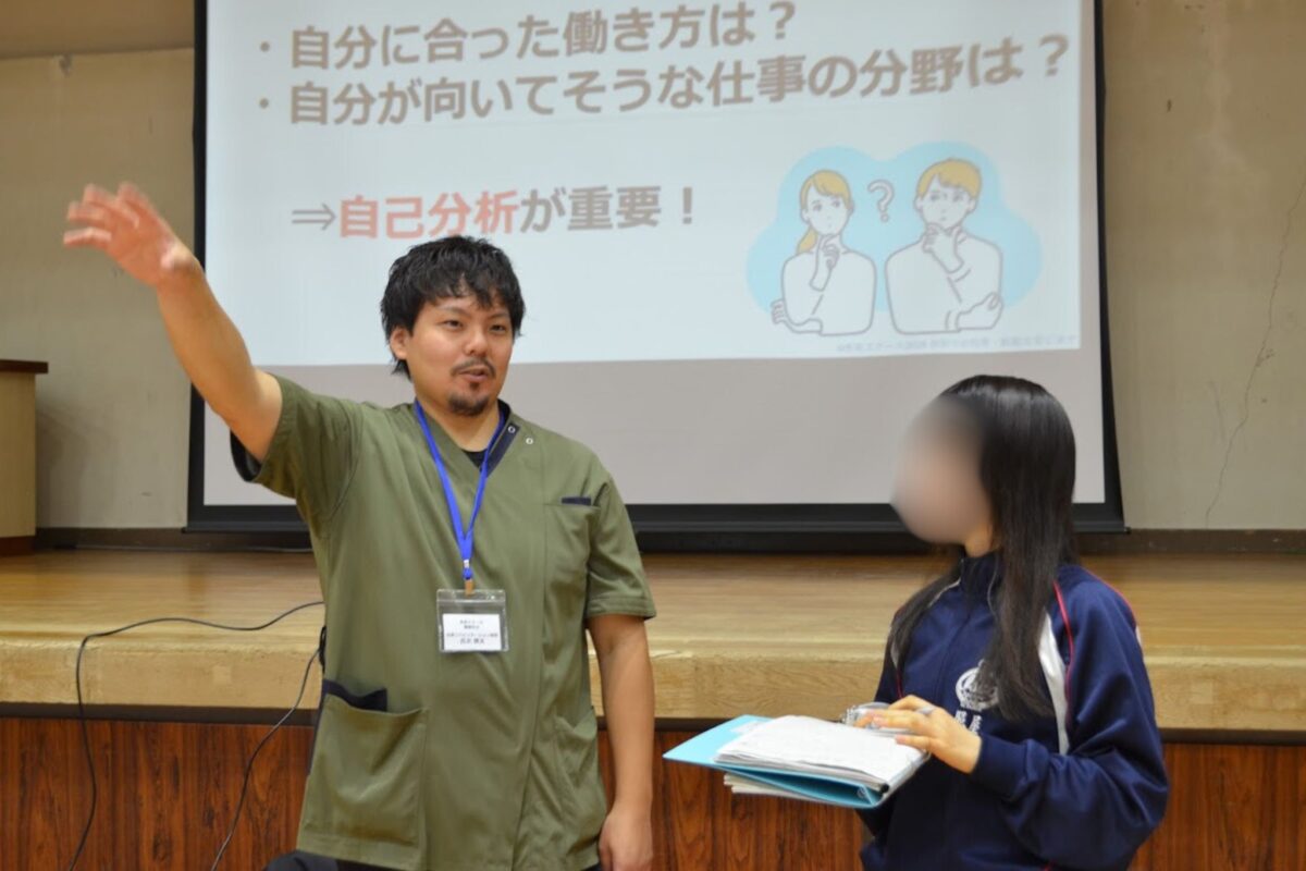 今回、この特別な授業を担当してくださったのは、地域で実際に働く12名の職業先生たちです。生徒たちにとって、地域で働く大人から直接話を聞くのは初めての経験。 教室では、職業先生の話に真剣に耳を傾け、一生懸命メモを取る姿が印象的でした。 終わりのチャイムが鳴ったあとも教室に残り、職業先生と話し続ける生徒も多く、 その姿から「もっと知りたい」「話したい」という気持ちがあふれていました。